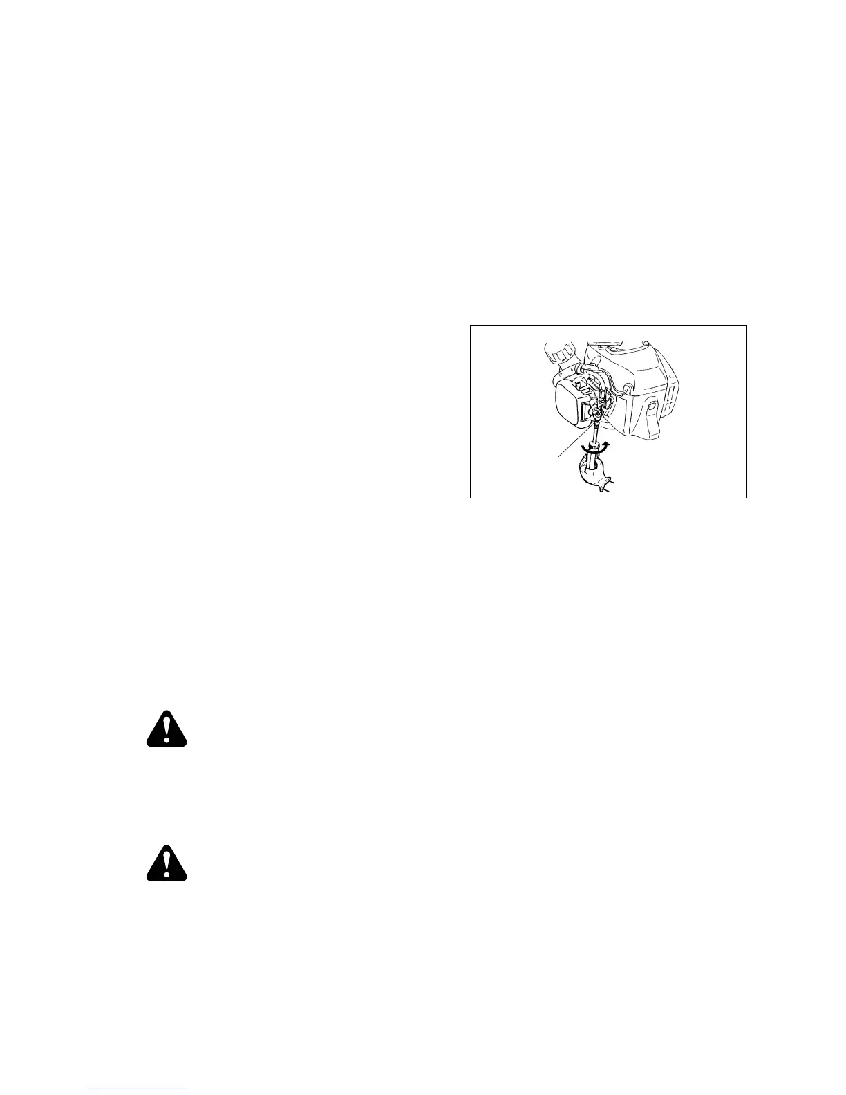 rpm or just below clutch engagement speed. The cutting blades must not move and the engine
