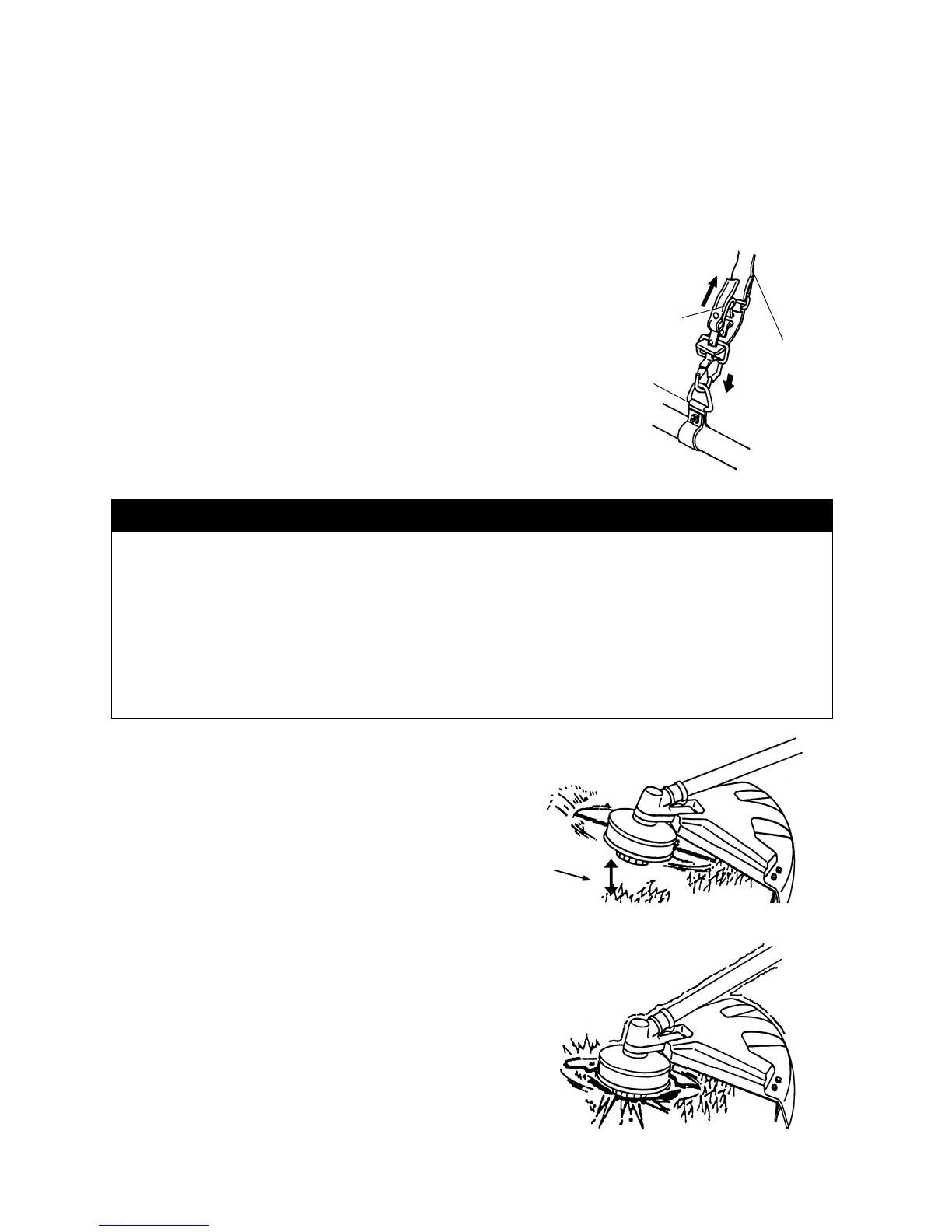 ・Use of improper line could cause line to break and be thrown in operator’s or bystander’s