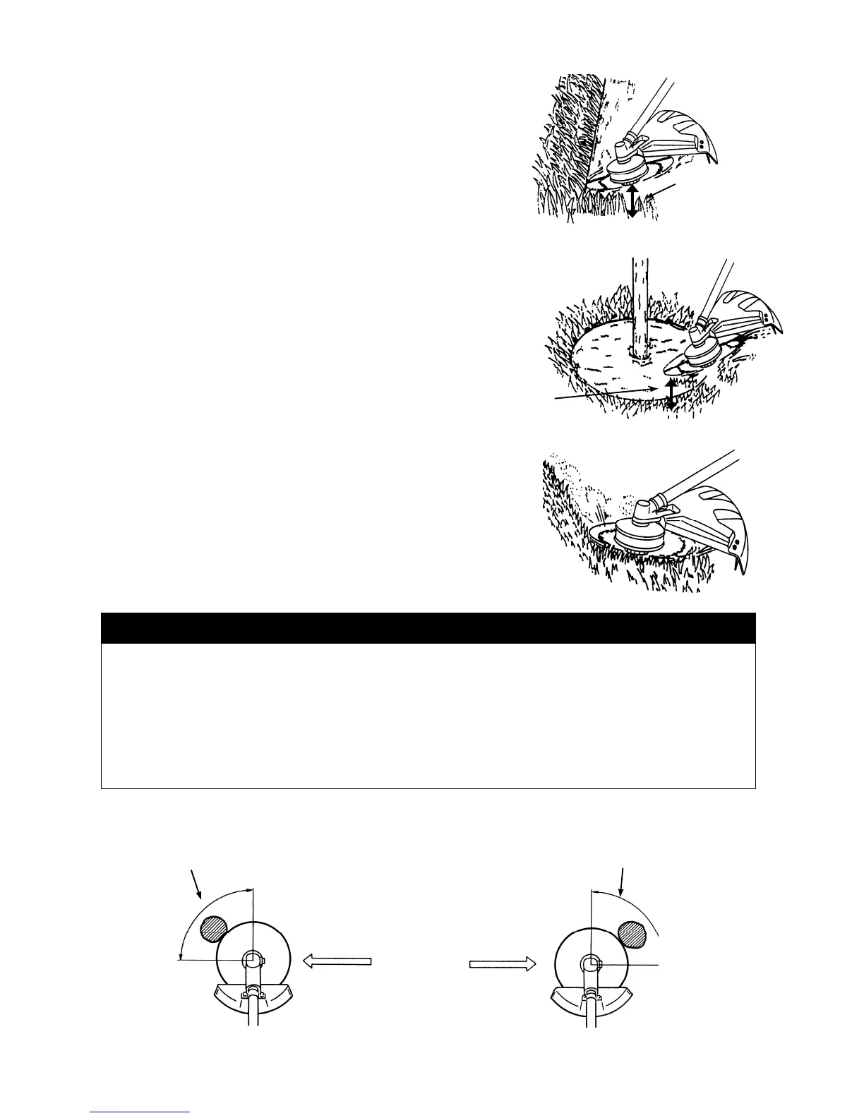 ・Cutting heavy brush from the wrong direction can cause the Brushcutter blade to kick back.
