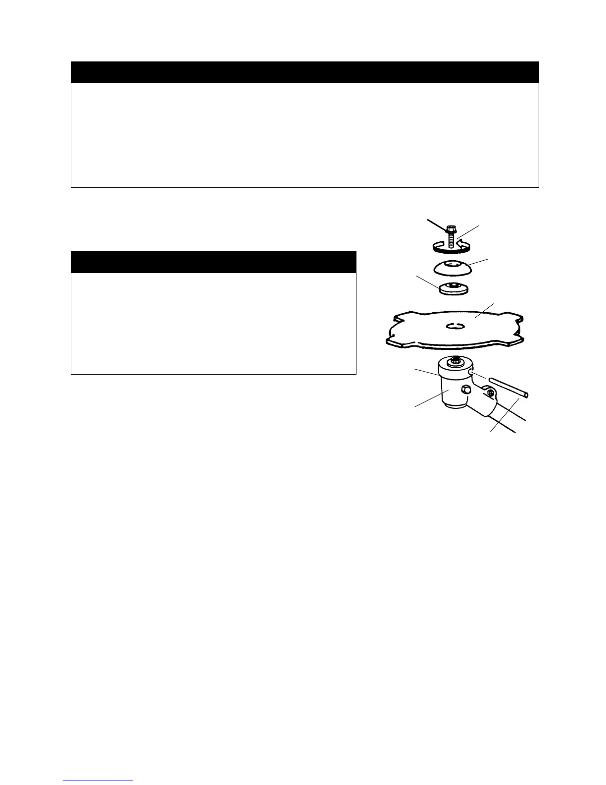 ・Make sure the Brushcutter blade is securely fastened to the attaching shaft in the gearcase.