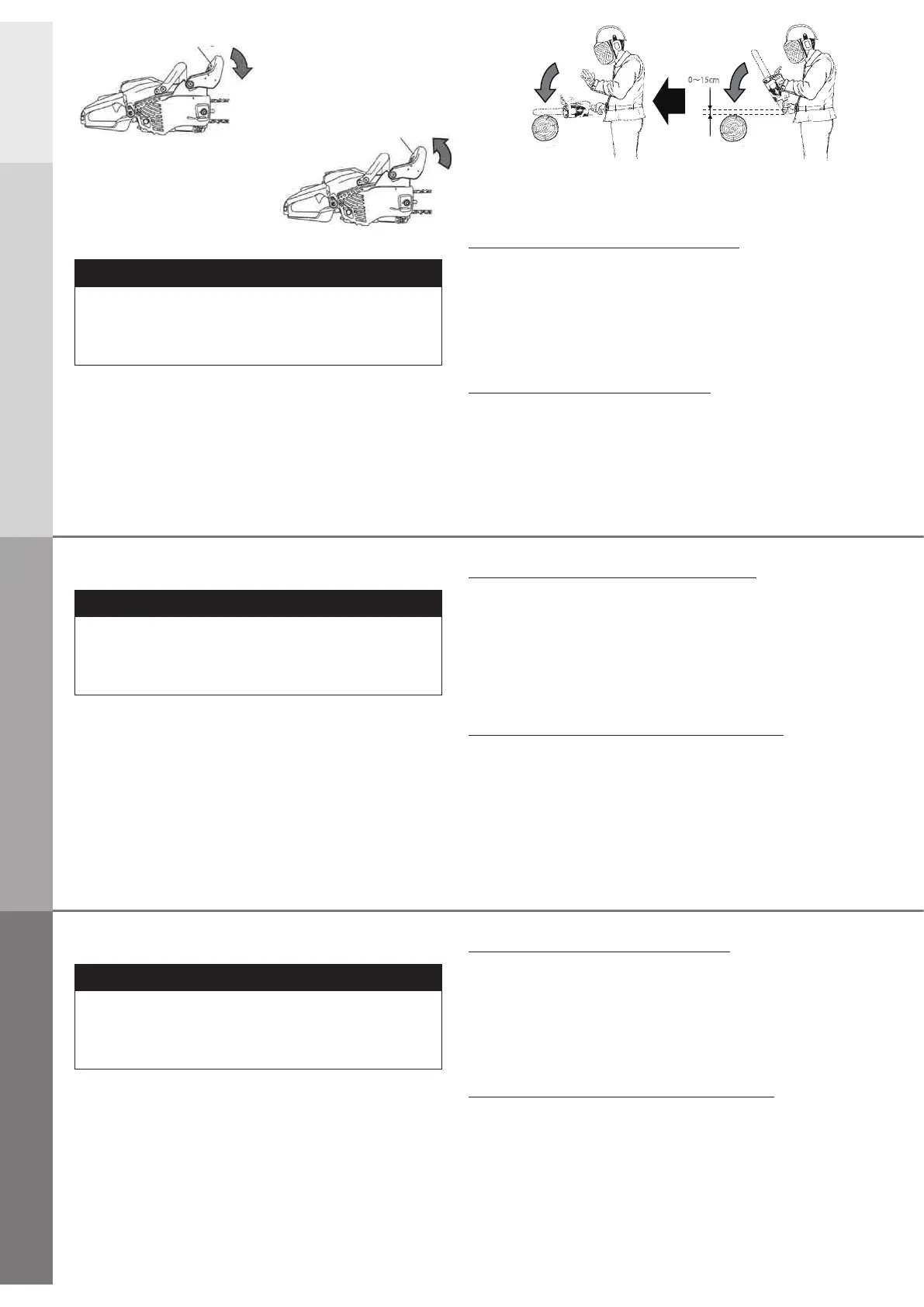 • If the brake is tripped by kick back reaction, the chain will stop. Immediately