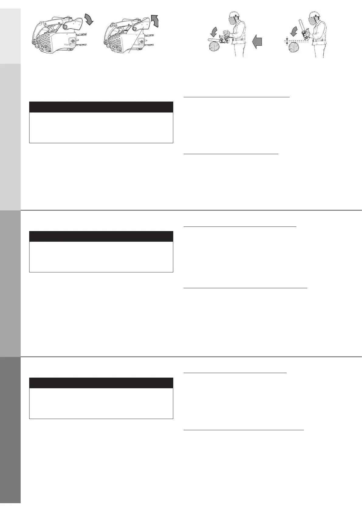 3. Operate the chain brake by turning your left wrist against the front hand guard