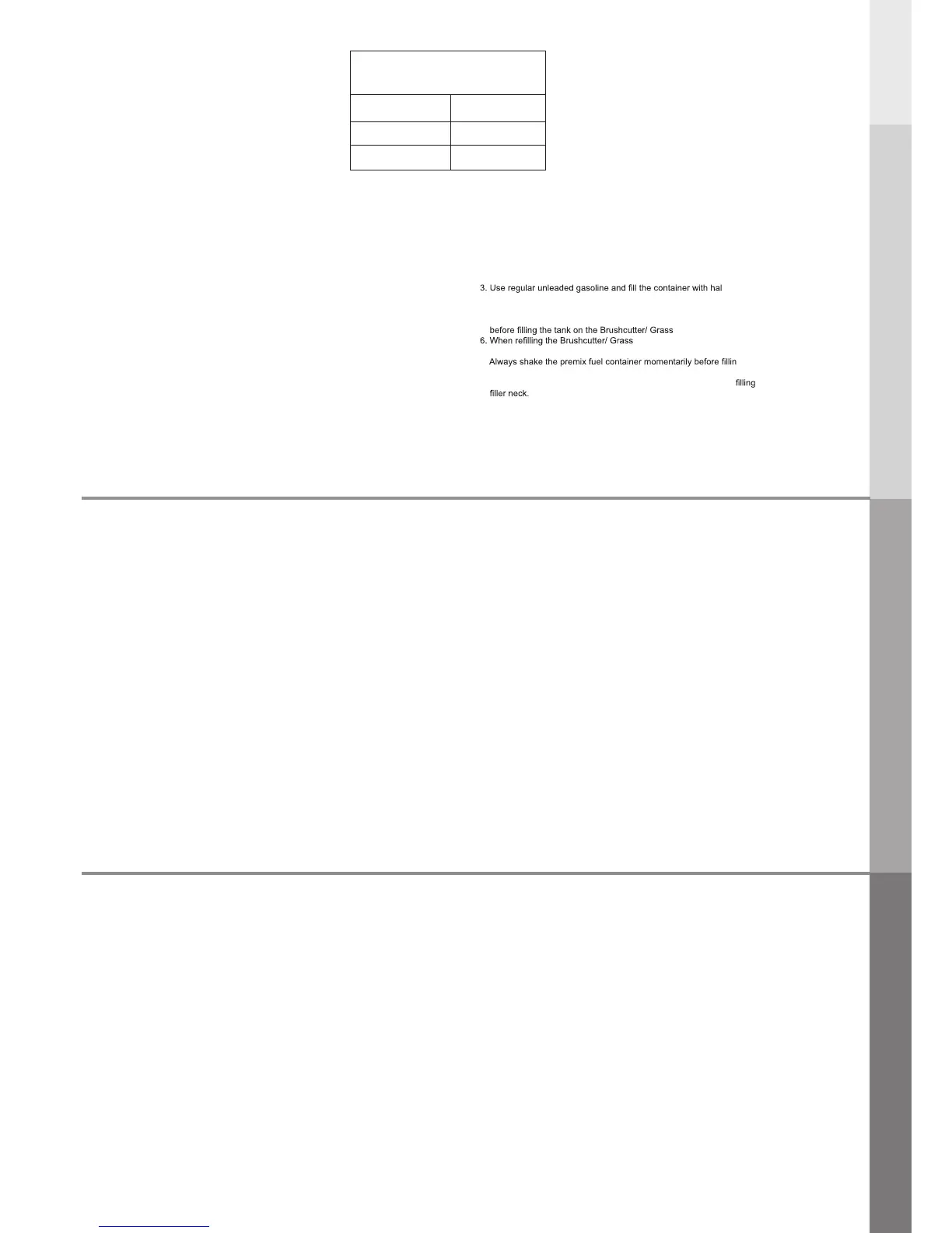 IMPORTANT: Never mix gasoline and oil directly in the Brush