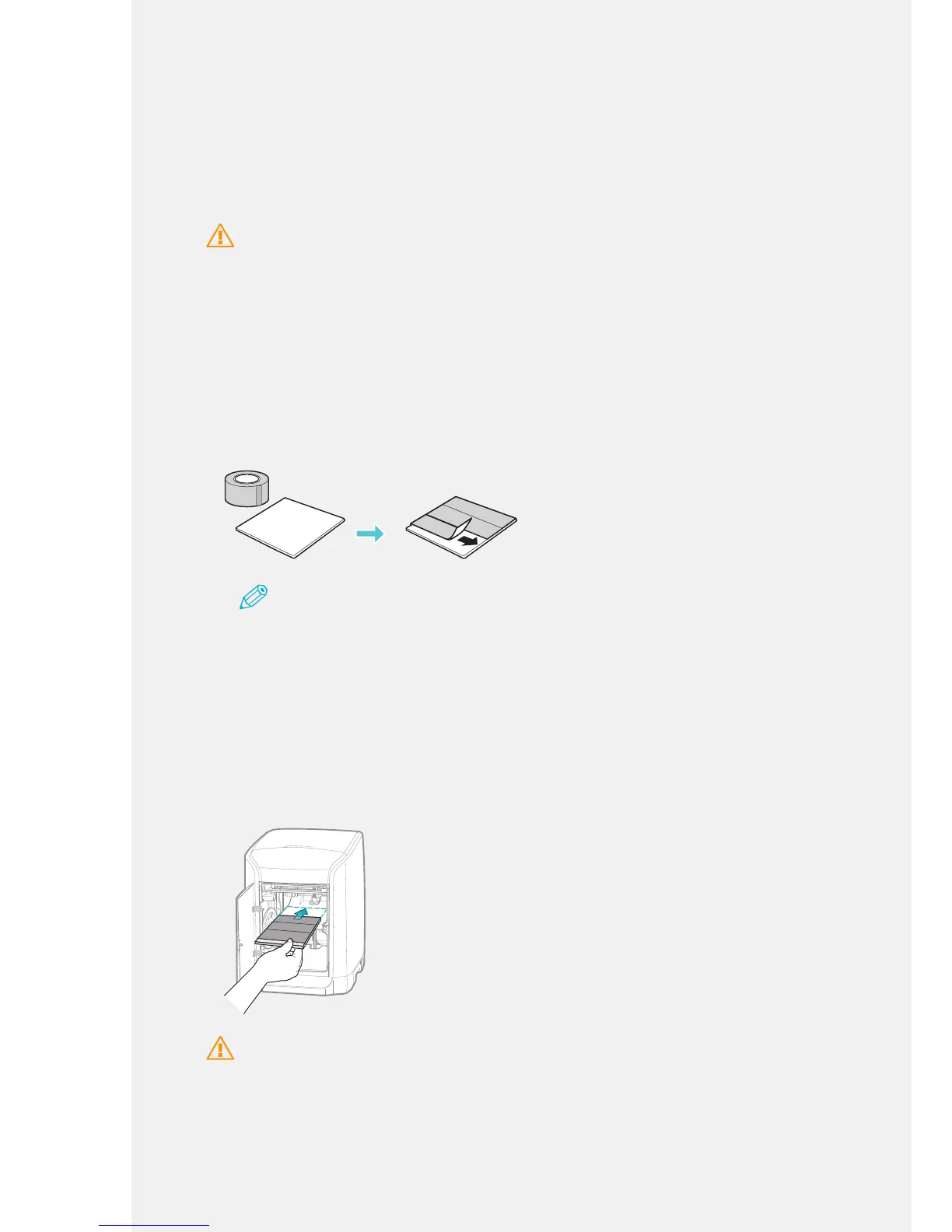 • Apply tape to the print bed only and not beyond the edges of the print bed.
