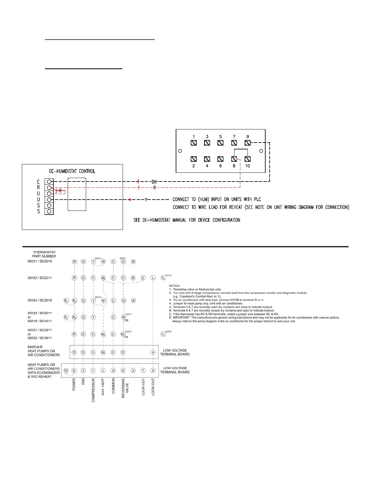 Figure 13a. Humidistat Wiring to a Marvair Air Conditioner with Reheat.