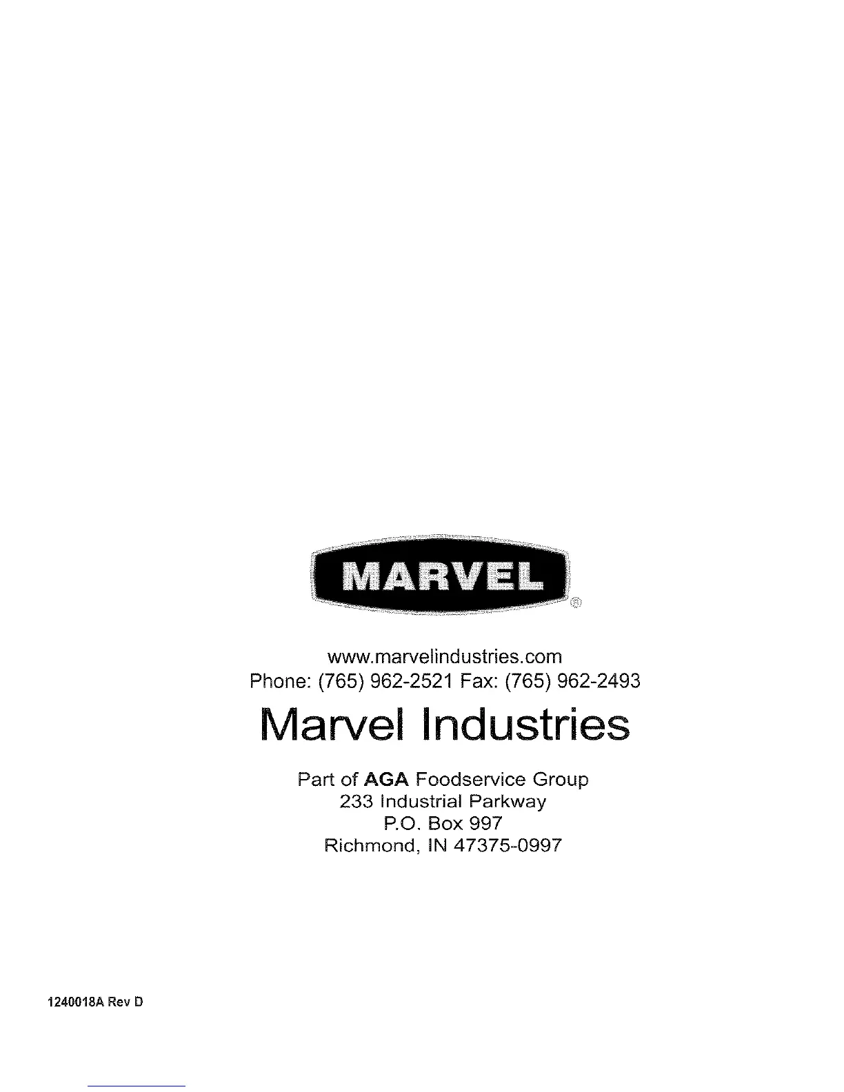 Other manuals for Marvel 61WC-BB-G