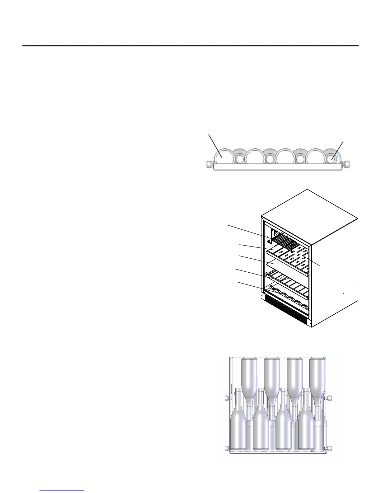 The wine rack pull-out shelf holds eight (8) bottles. See