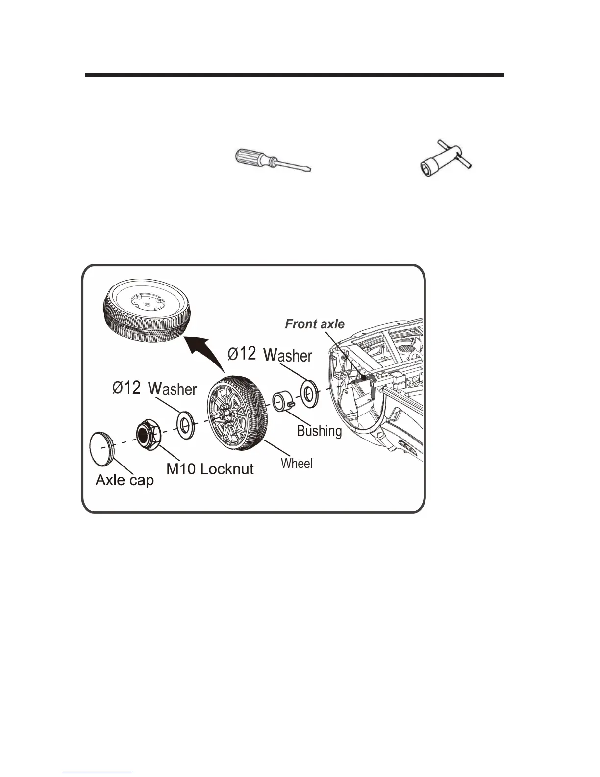 5. Remount the Ø12 washer, M10 locknut and securely tighten the wheel; then