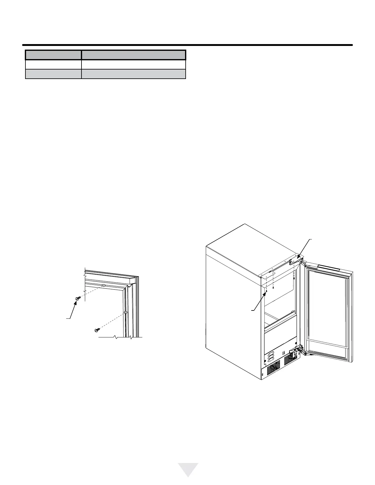 les charnières par-dessus les 4 vis dans l’armoire, 2 en haut