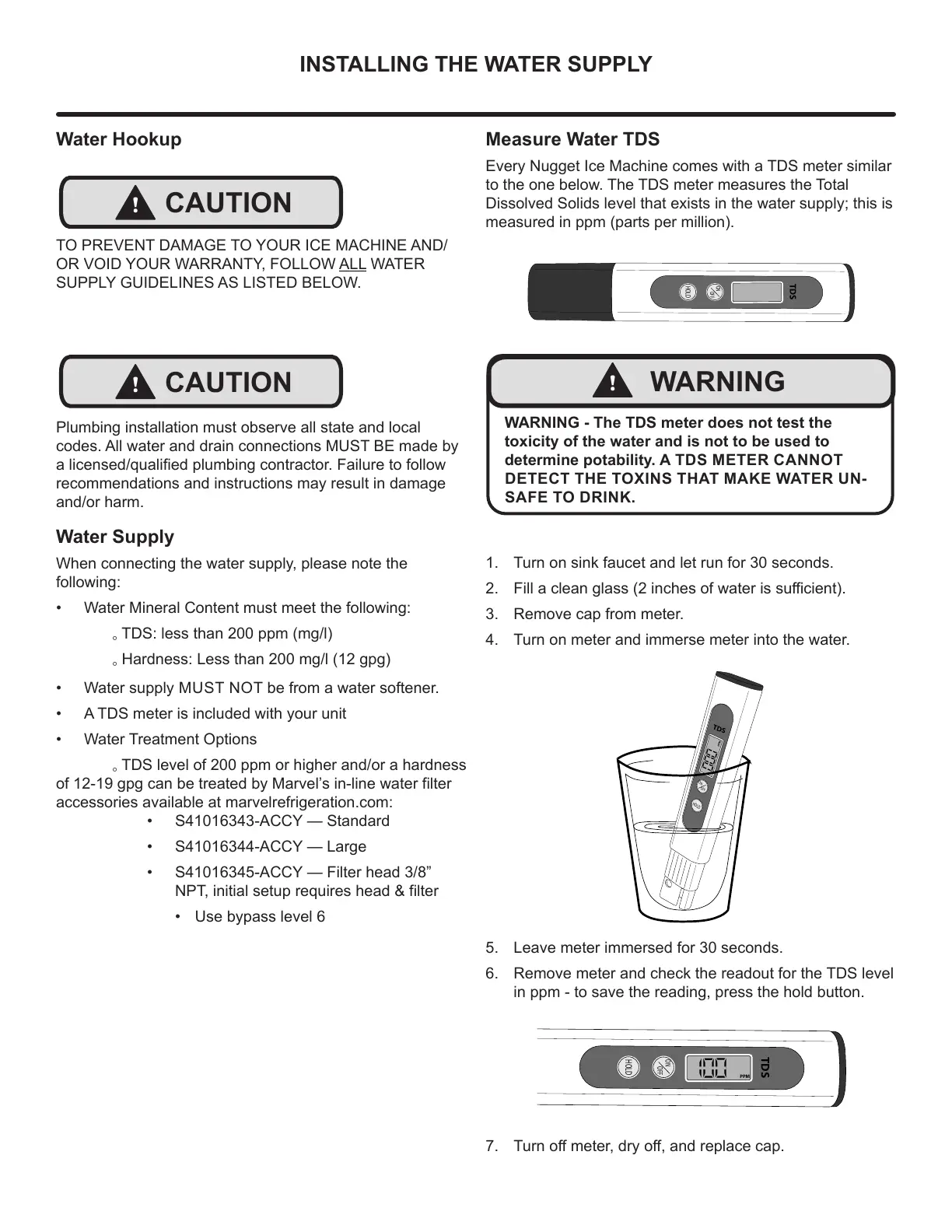 WARNING - The TDS meter does not test the