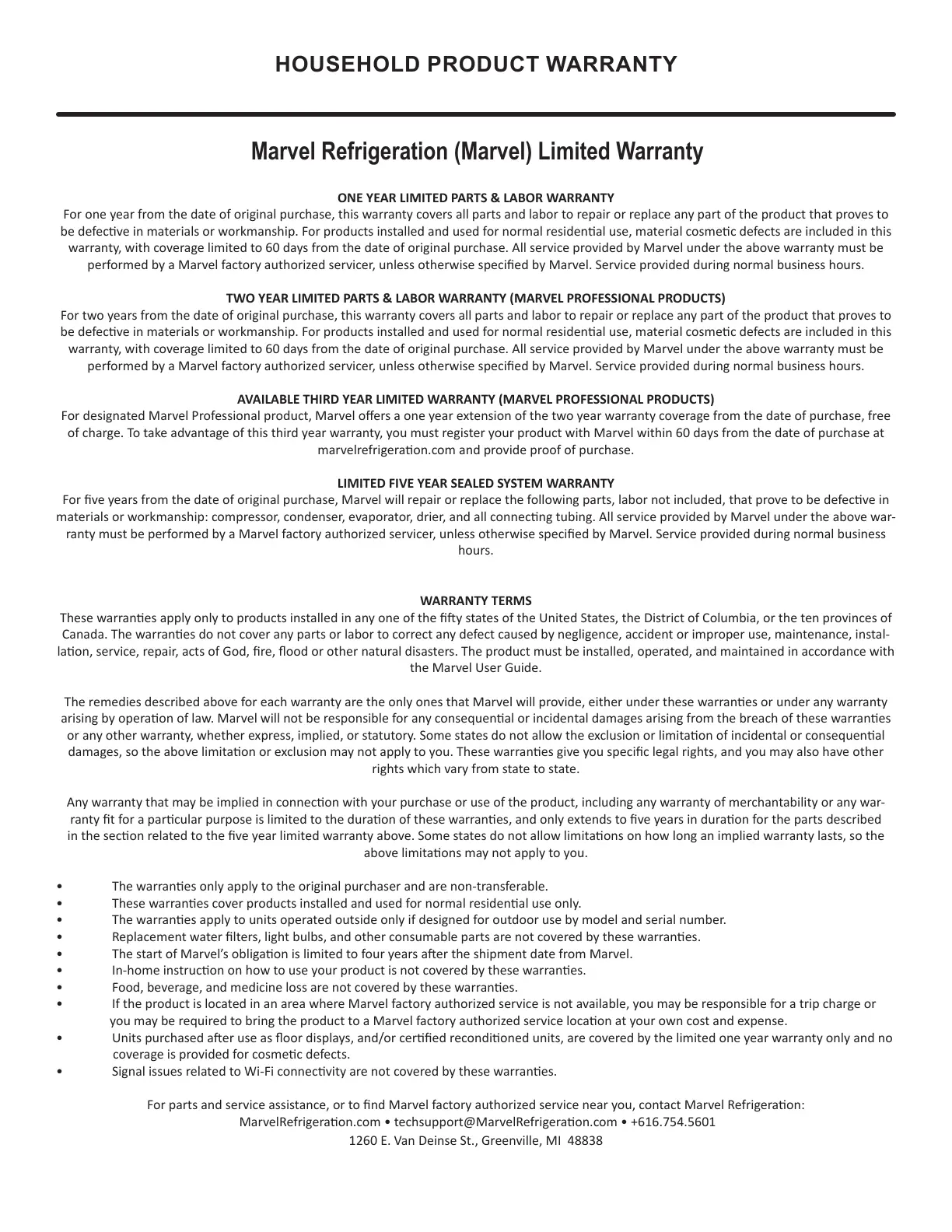 MarvelRefrigeraon.com • techsupport@MarvelRefrigeraon.com • +616.754.5601