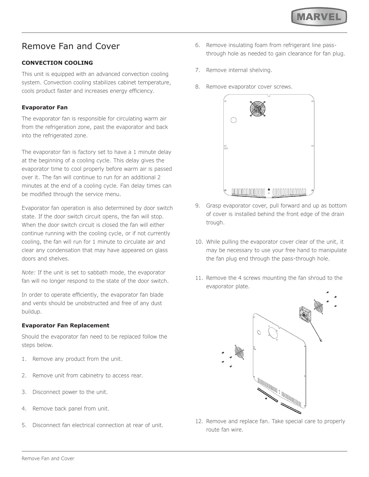 Should the evaporator fan need to be replaced follow the