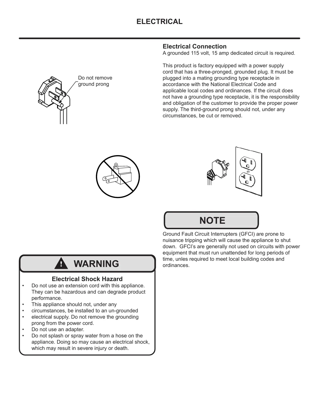 appliance. Doing so may cause an electrical shock,