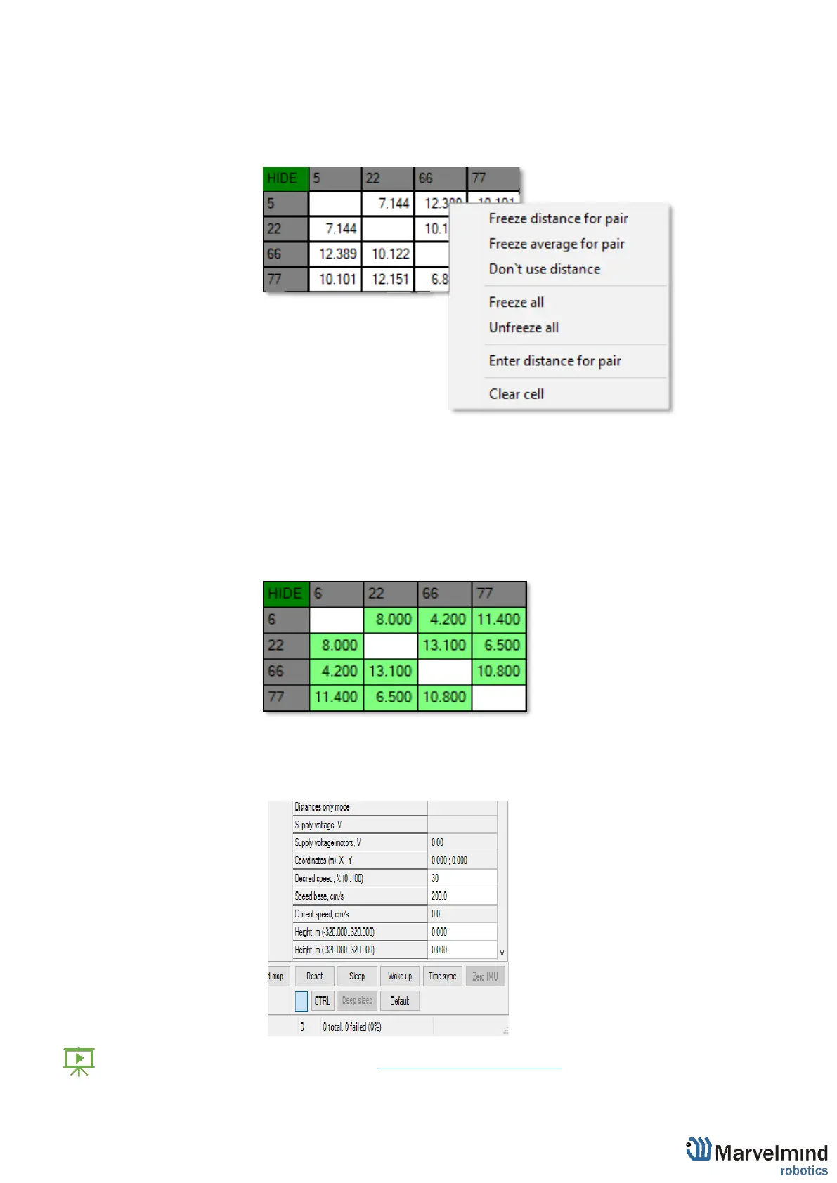 menu will open. There you can control the table of distances. Choose