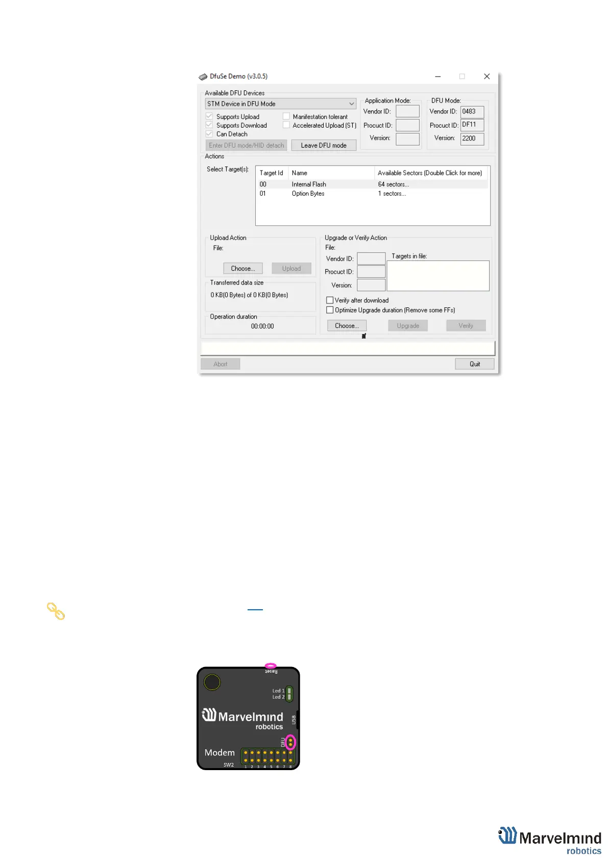 6.6.5.15. Modem will go to DFU mode. Press UPGRADE button in the DfuSe