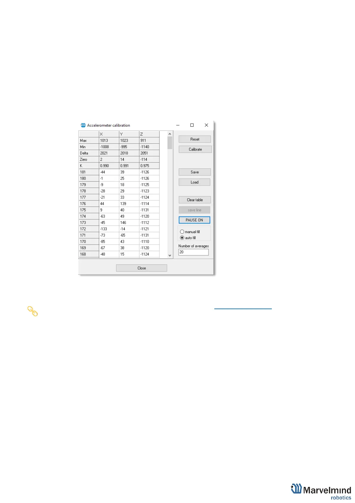 - Accelerometer calibrator will choose the best value for each axe. At the end click
