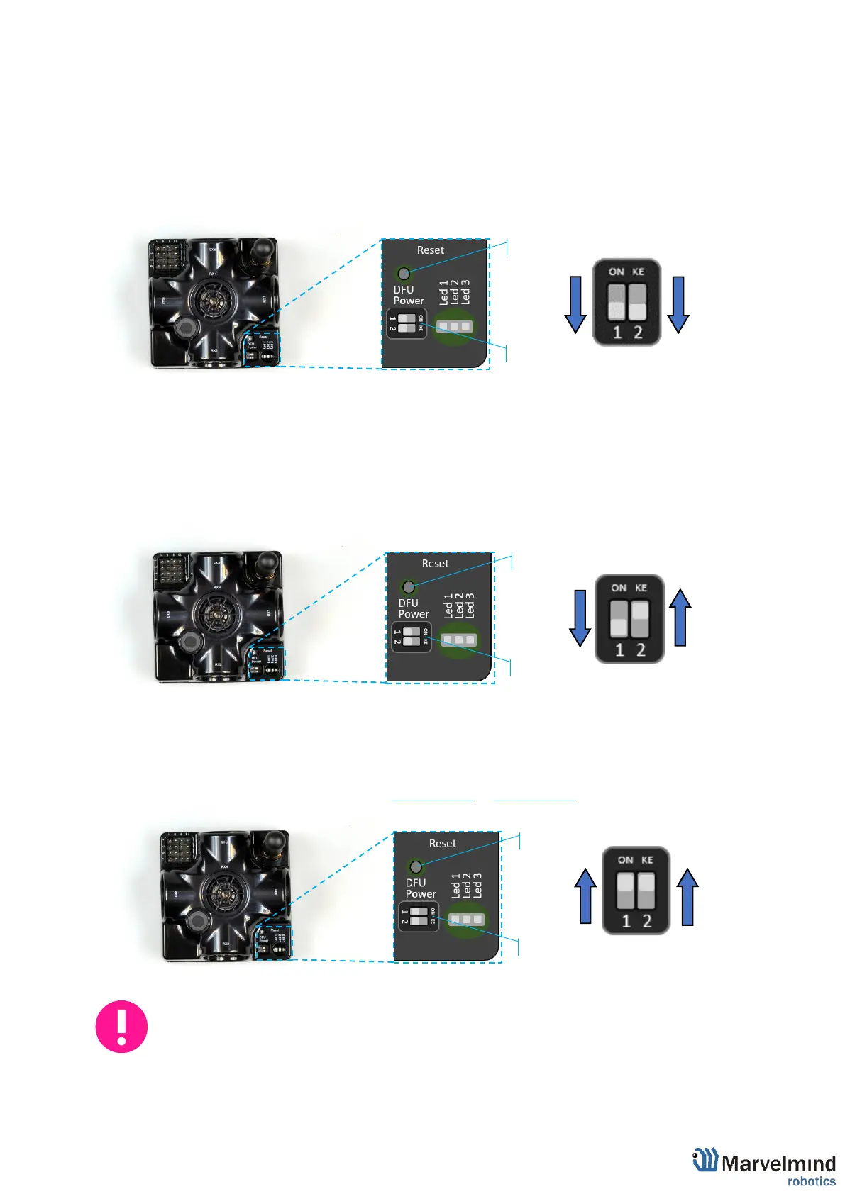 Put DIP switch to position for work and restart beacon after DFU programming.