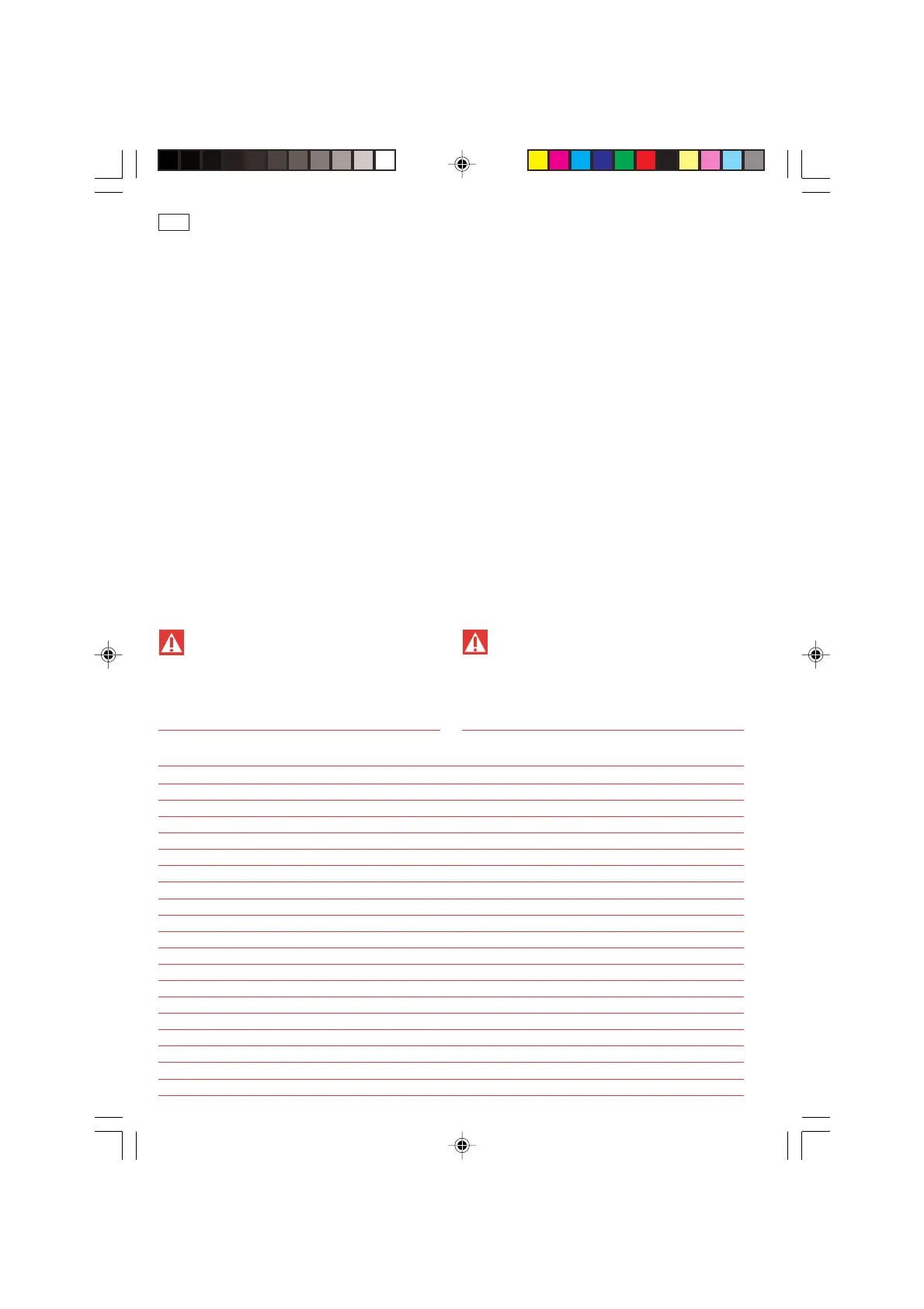 La tabella riporta le indicazioni del livello (H)