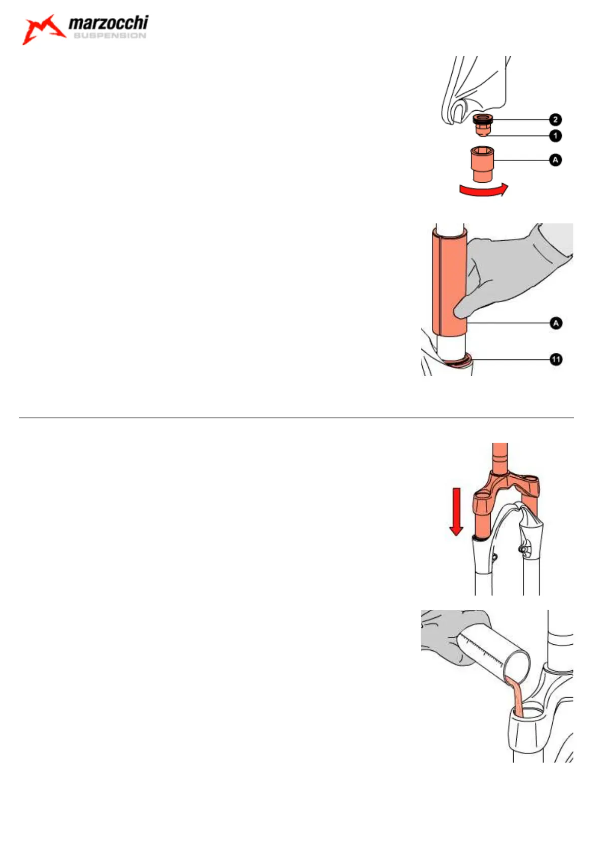 A lower or higher volume or a type of oil other than the one recommended can change the behaviour of the fork in every phase.