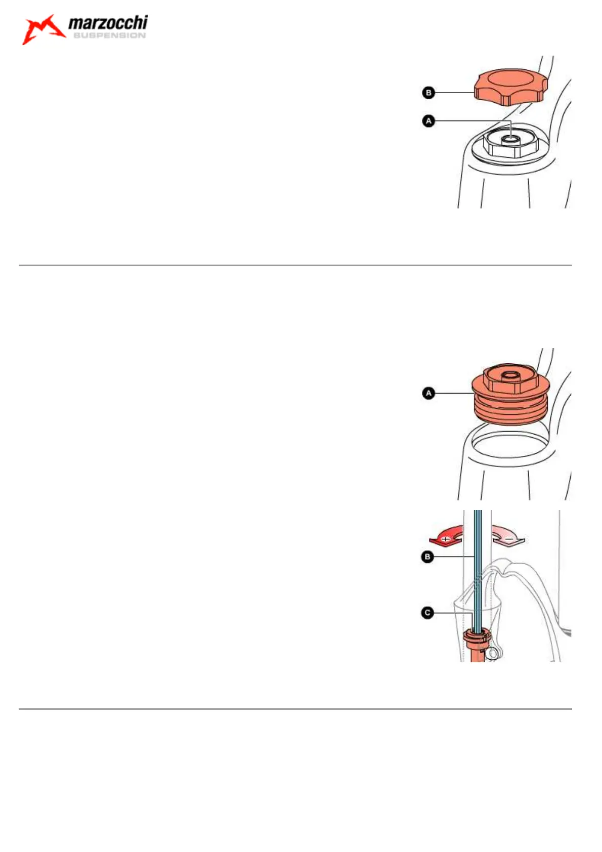 Fit the hexagonal rod (B) supplied into the hole of the adjustment screw (C) in the stanchion tube.