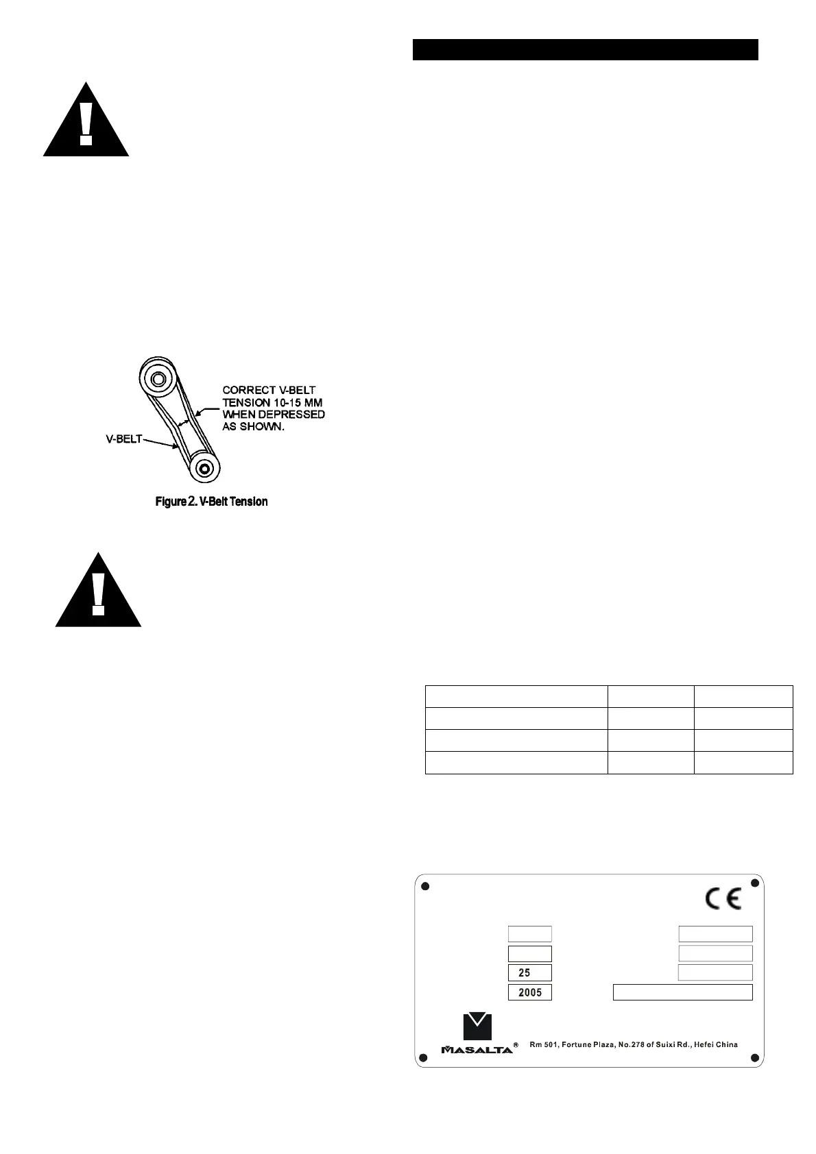 check the V-belt tension (Figure 2). Tension is proper if the