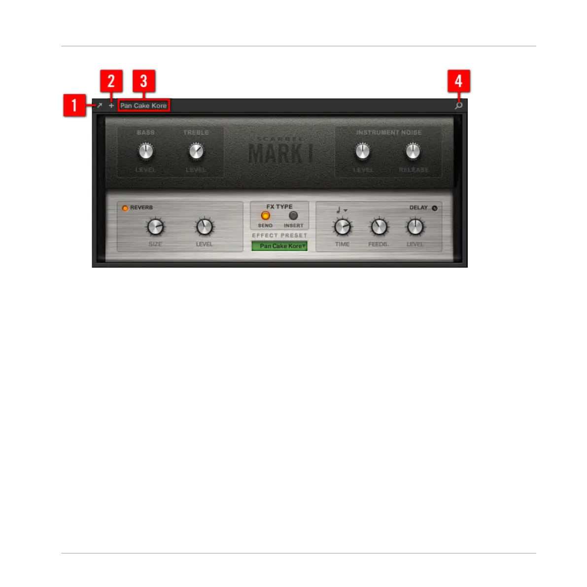 (1) Open Plug-in Window button (Native Instruments and External Plug-ins only): Click the little