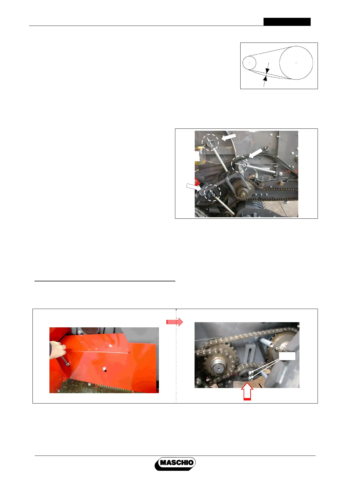Some of the roller chains of the machine are stretched by tensioners whose adjustment must be done