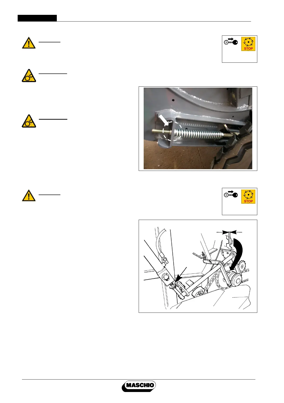 Adjust the springs that regulate the tension of the main conveyor chain on both the right and