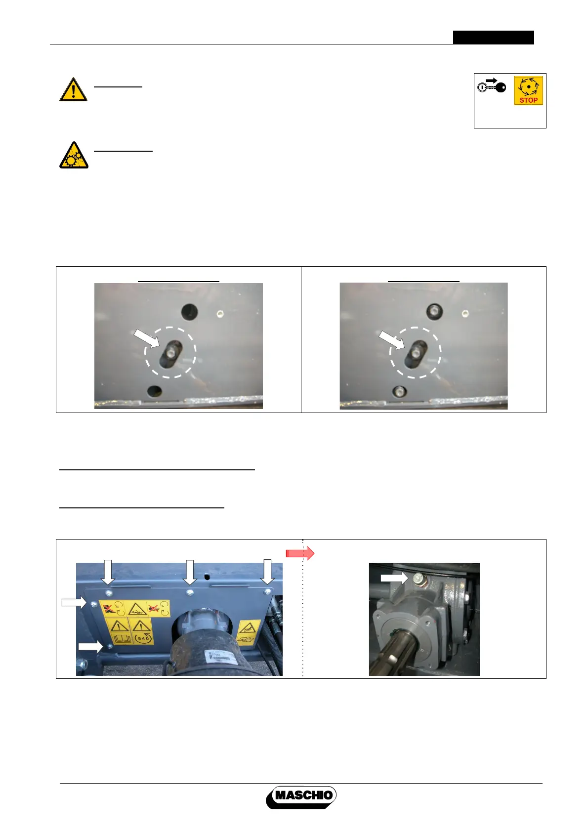 Depending on the type of box mounted on your machine, check the oil level in the transmission box regularly