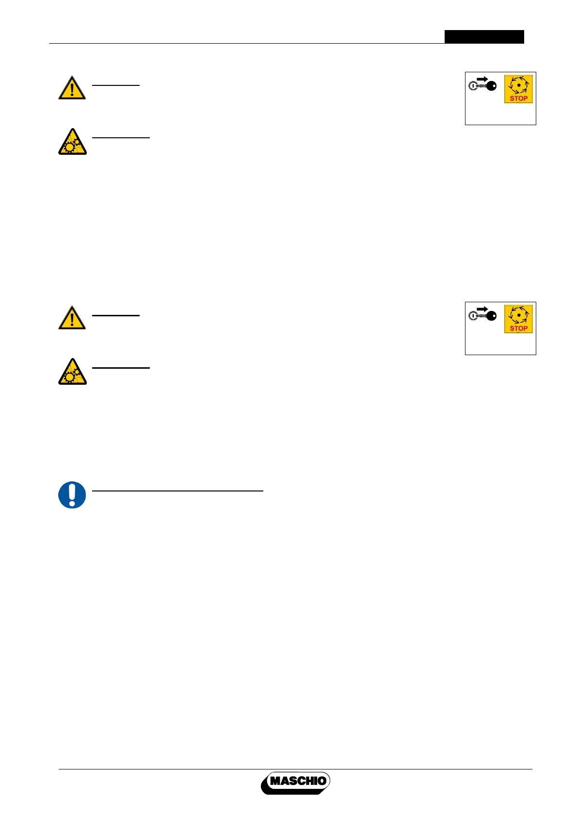 Spare parts must meet the requirements as defined by MASCHIO FIENAGIONE.