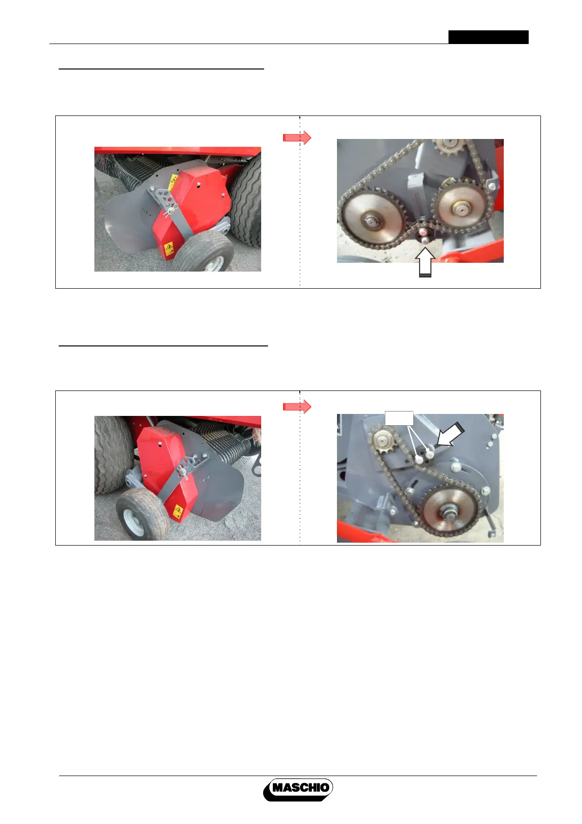 Pick-up chain tension adjustment (right side):