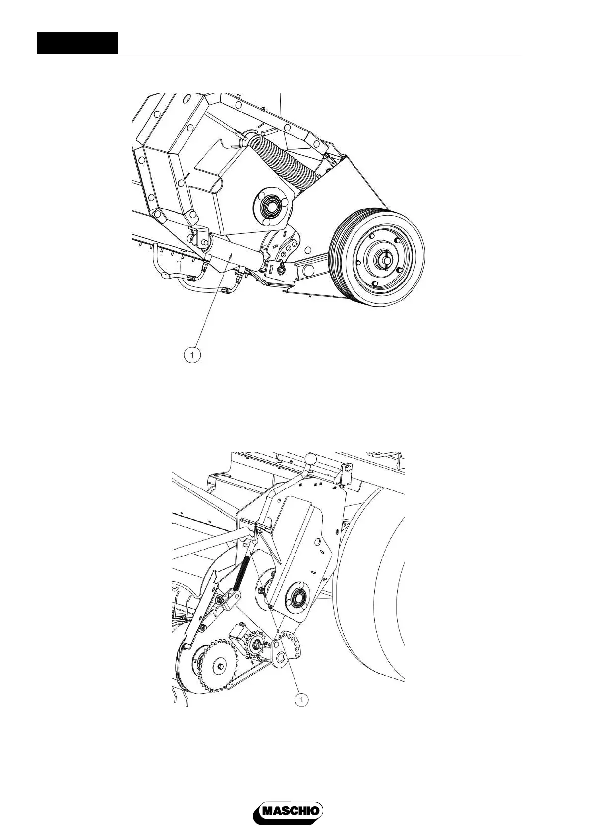 Collection unit is lowered and raised via collection piston. Distance of collection harrow