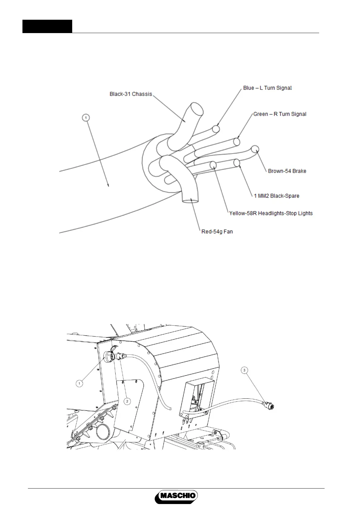 according to Connection Diagram to the tractor by authorized dealer. Ends of power cable