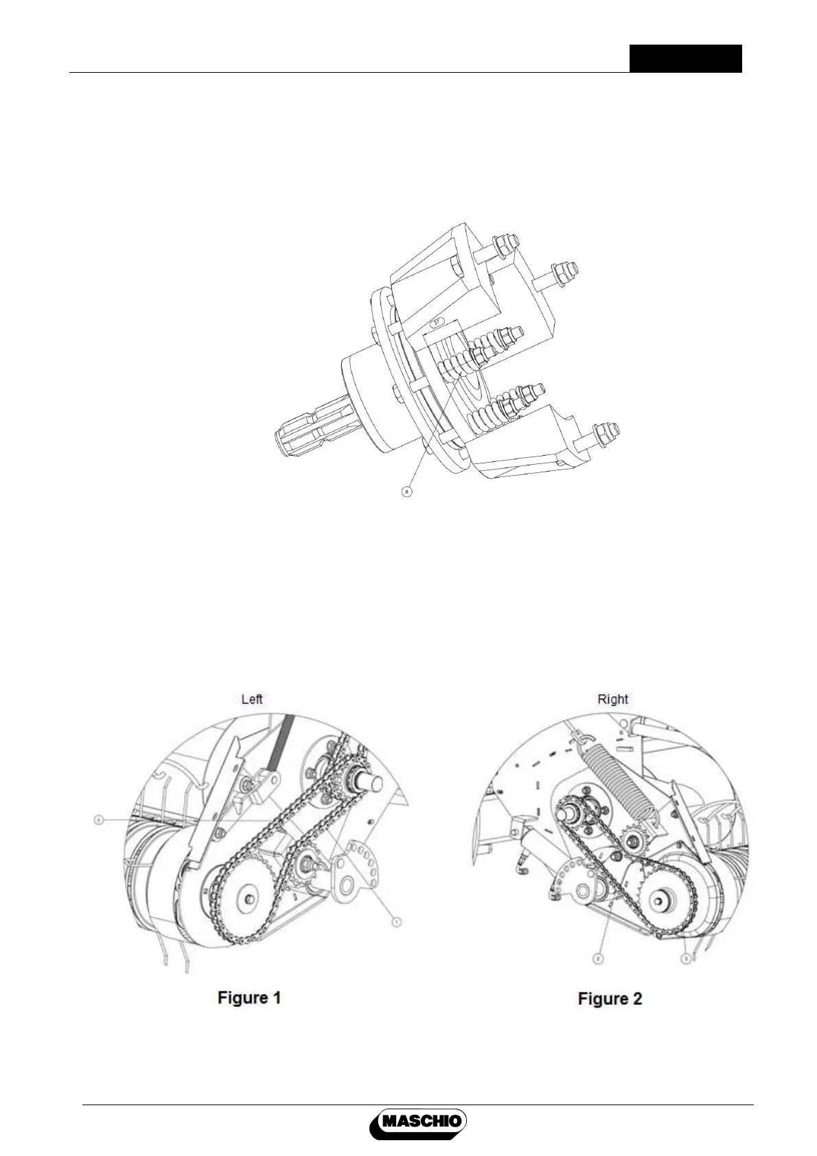 and right (3) sides, and once chain tensioning is completed as illustrated in the figure, chain