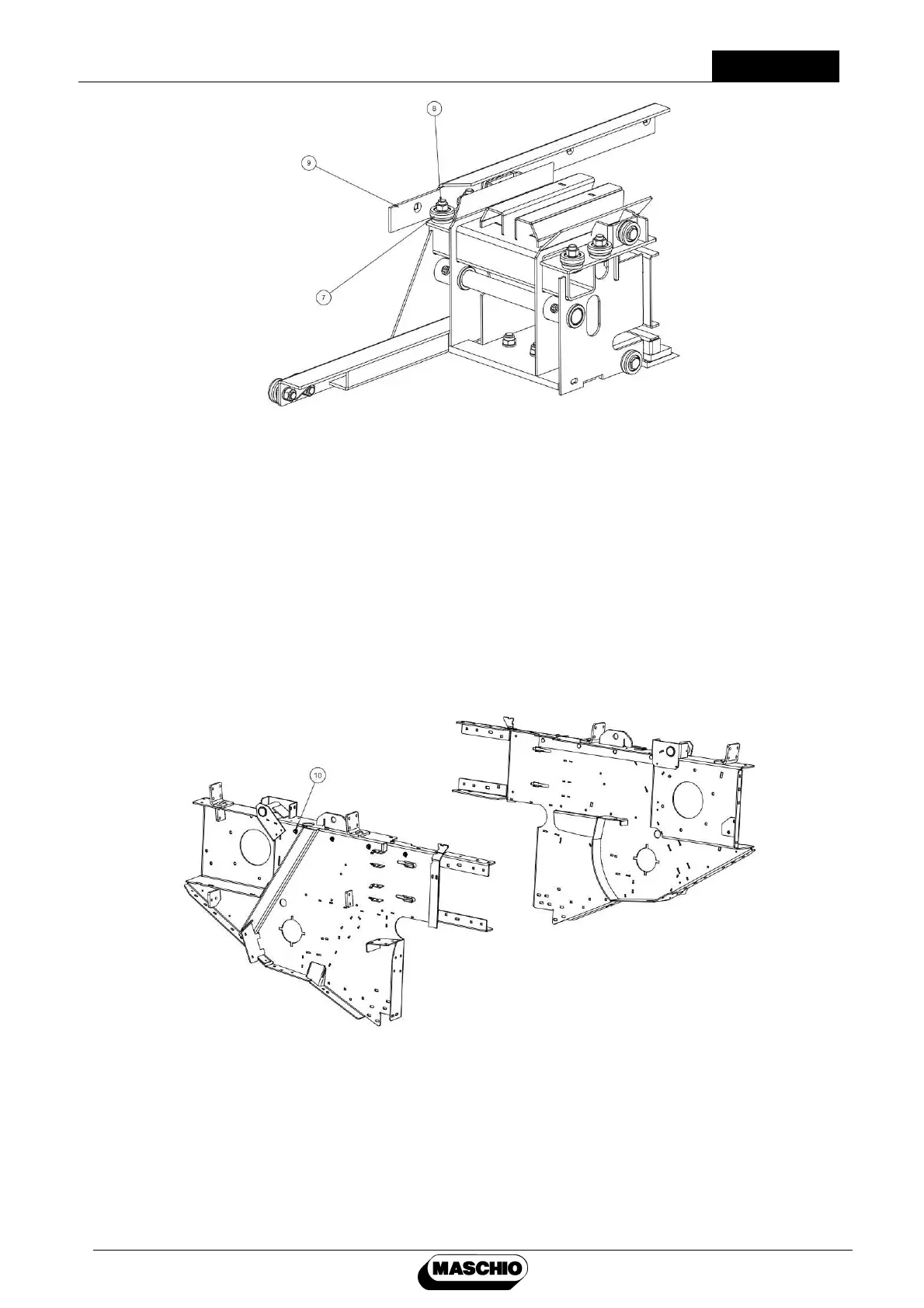 piston. Loosen 4 each bolts (10) that secure the two L twist upper rail plates on the baling