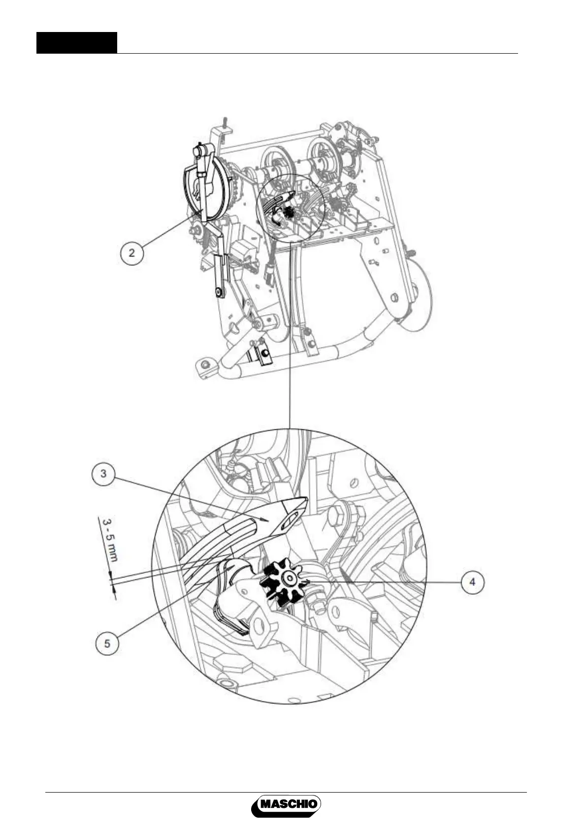 pinion gear (4) top surface to check it. The distance between star plate (5) and needle