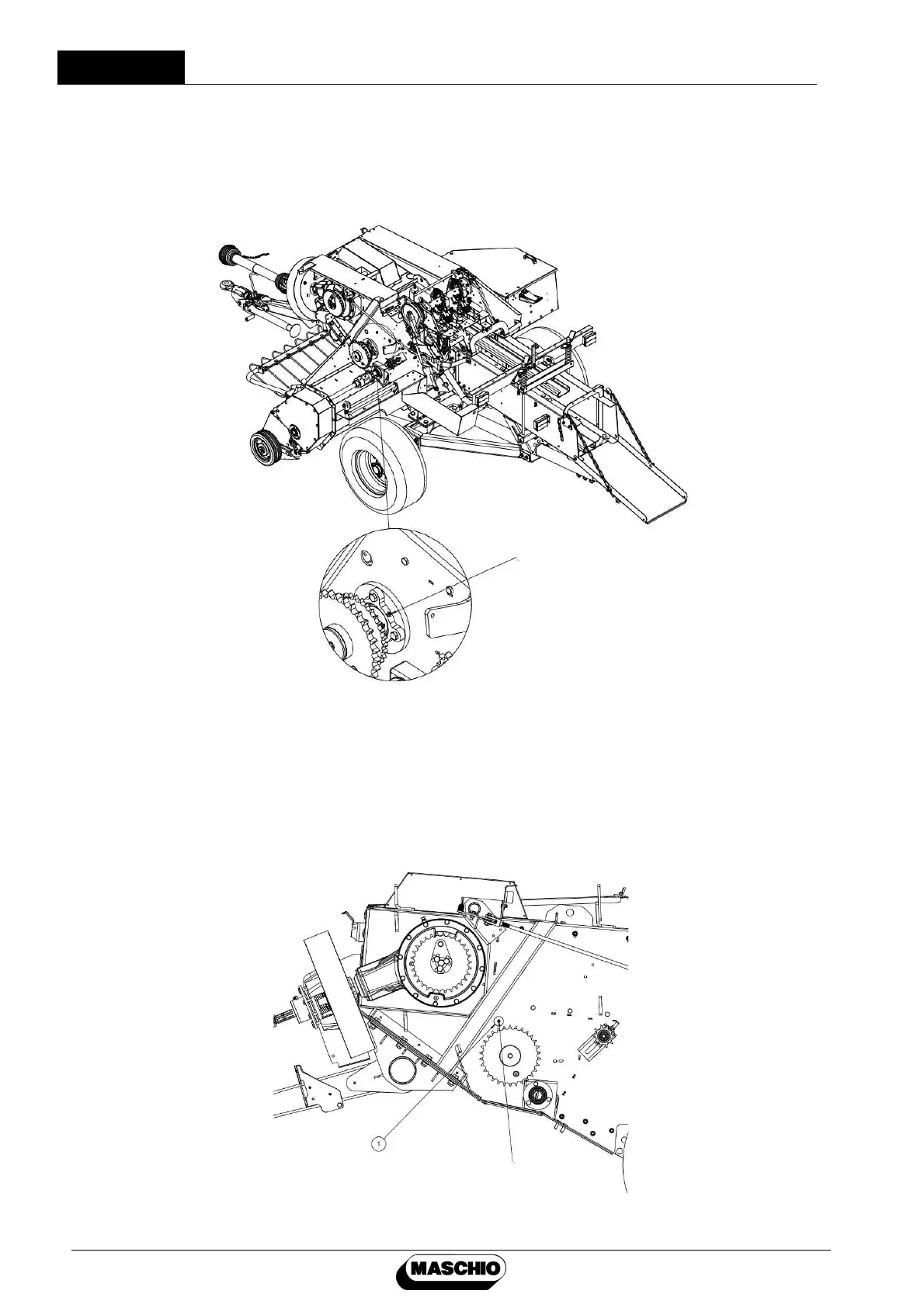 lubricant filling opening (1), and lubricate hayfork unit using grease every 10 hours. (Figure