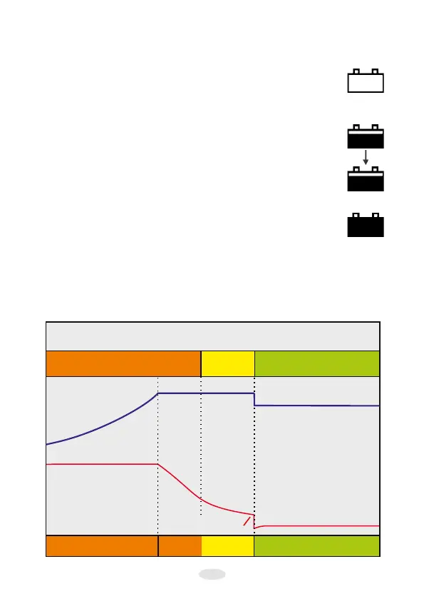 LED-indication will turn to YELLOW during Top-up charge. The battery is typically 90-95%