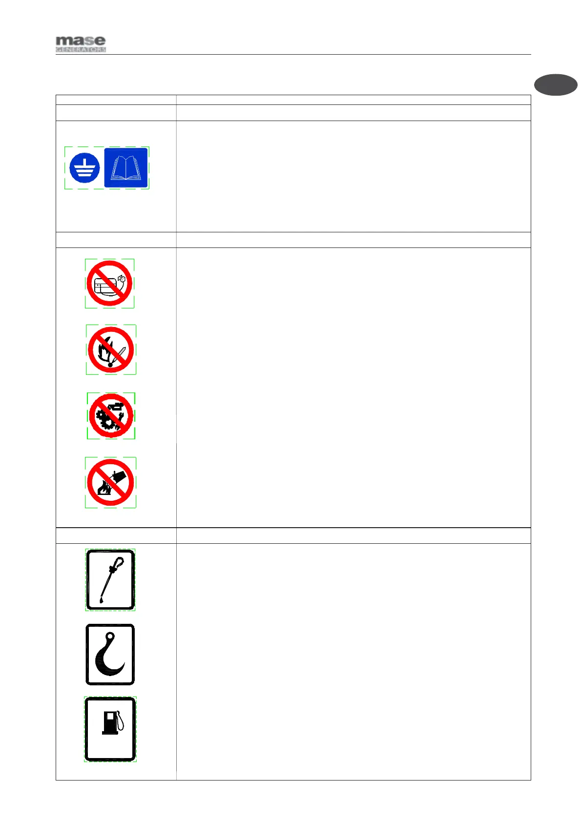 - Indicates the position of the fuel tank to fill up the generator.