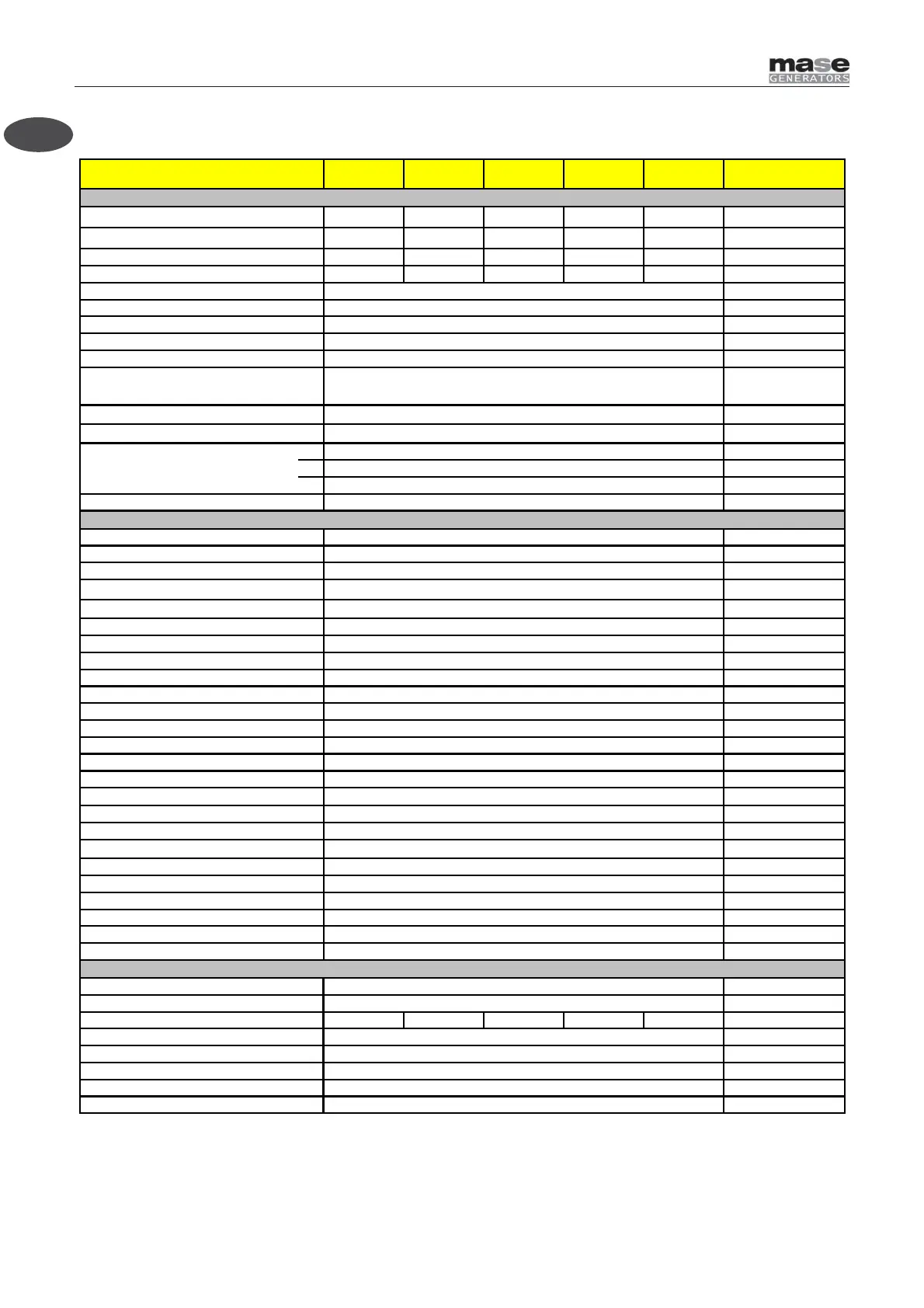 2.3 TECHNICAL CHARACTERISTICS TABLE