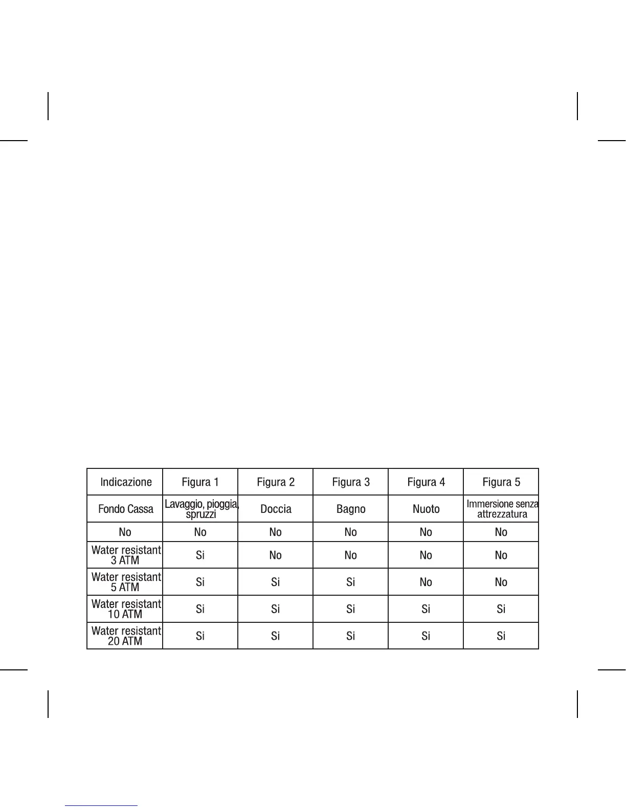 di impermeabilità effettuata. L’indicazione water resistant è valida solo per gli