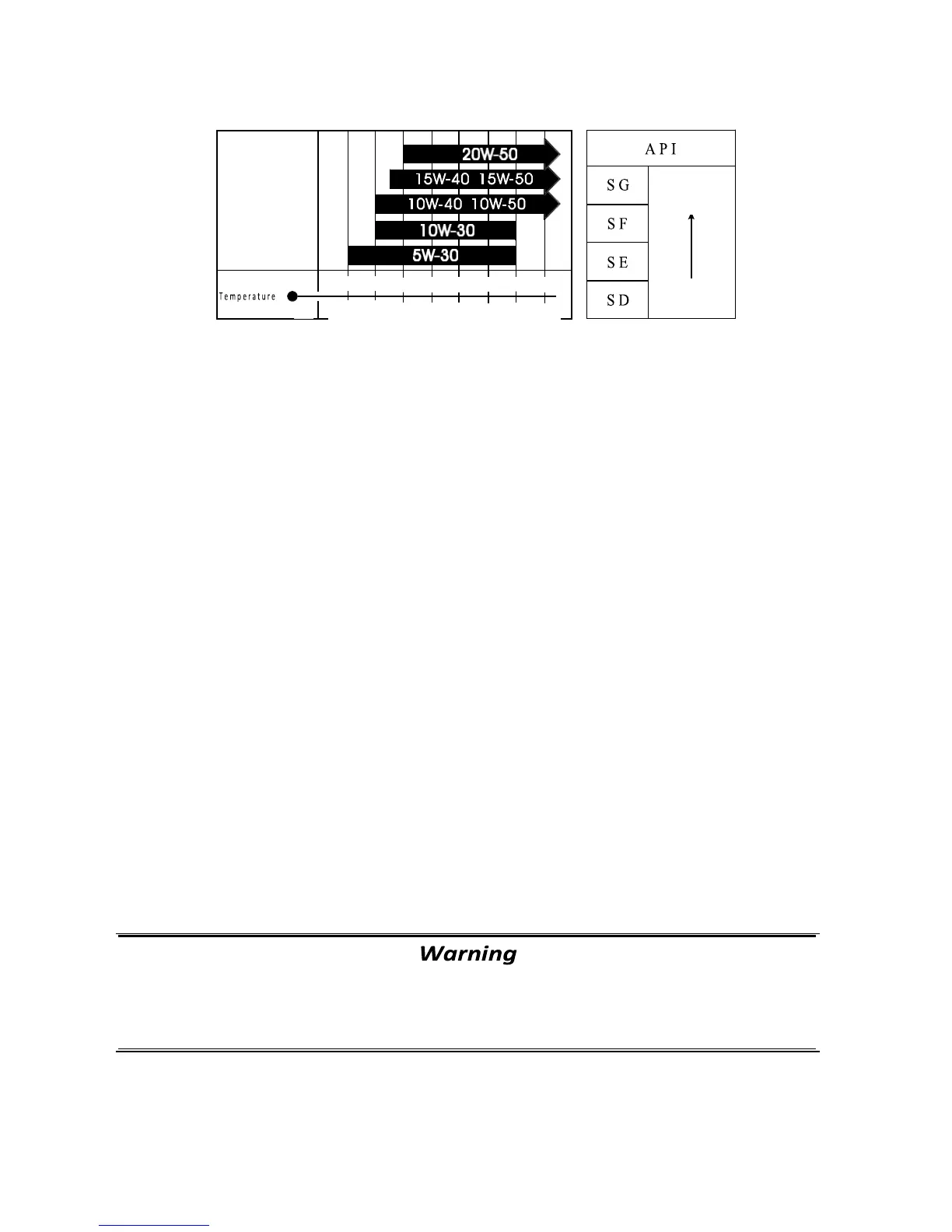 The use of SAE5 10W-30 4-stroke lubricant is recommended.
