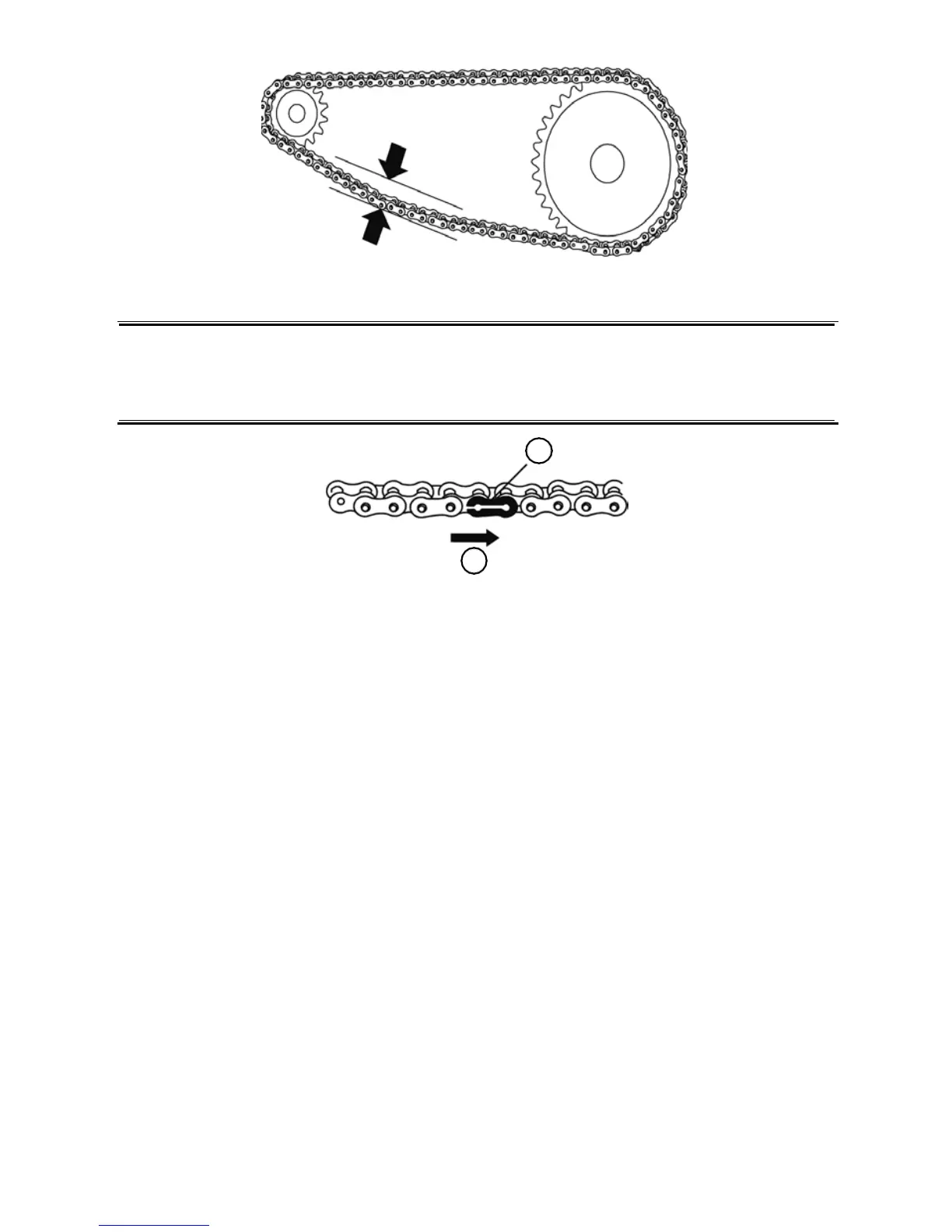 1. Chain connector clip 2. Direction of rotation