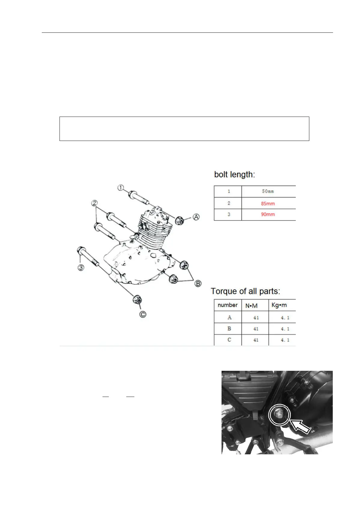 Assemble the engine mounting bolts and nuts as shown
