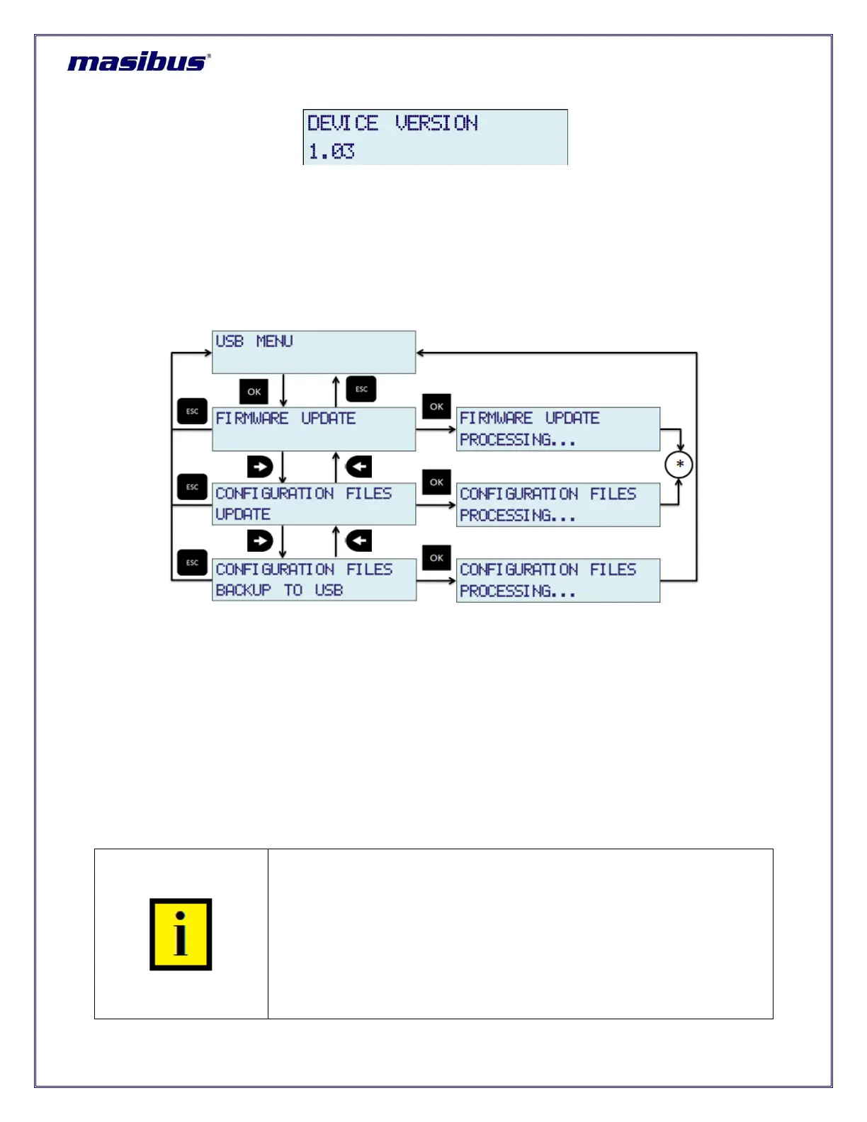 It is necessary to press OK key after changing any previous configuration