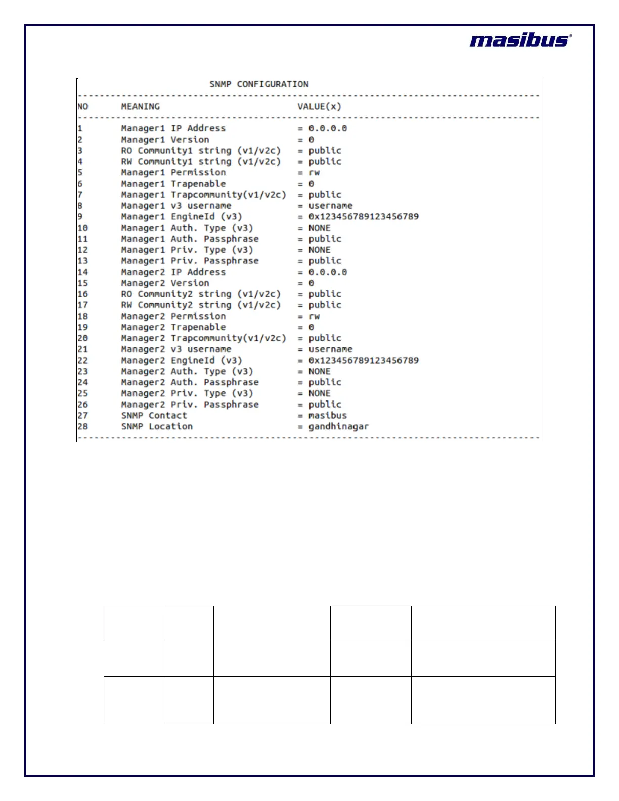 Below table provide each parameter description for SNMP parameters.