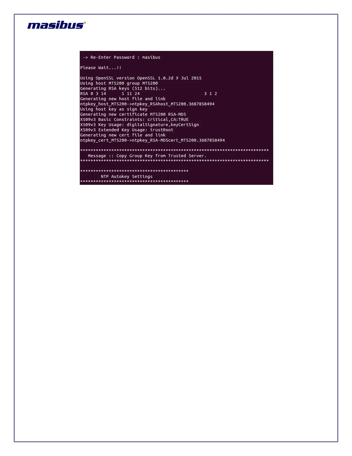 Step 4: After the NTP auto key is transferred from trusted server to server again go to the NTP autokey