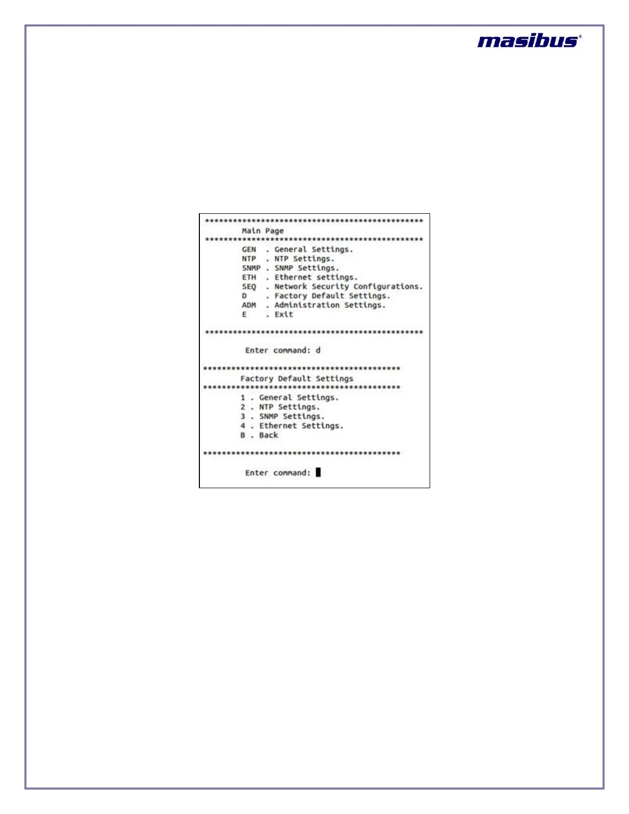 If user wants to change general setting to factory default, user should give “1” in command and then