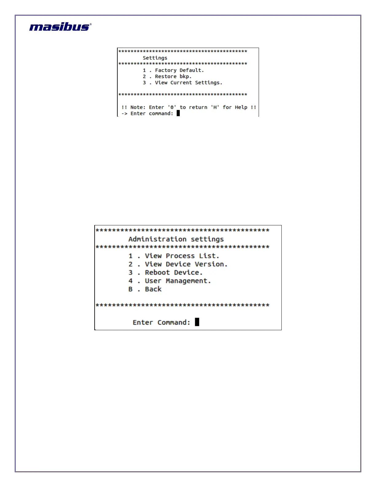 9.2.7 Administration Settings Menu: