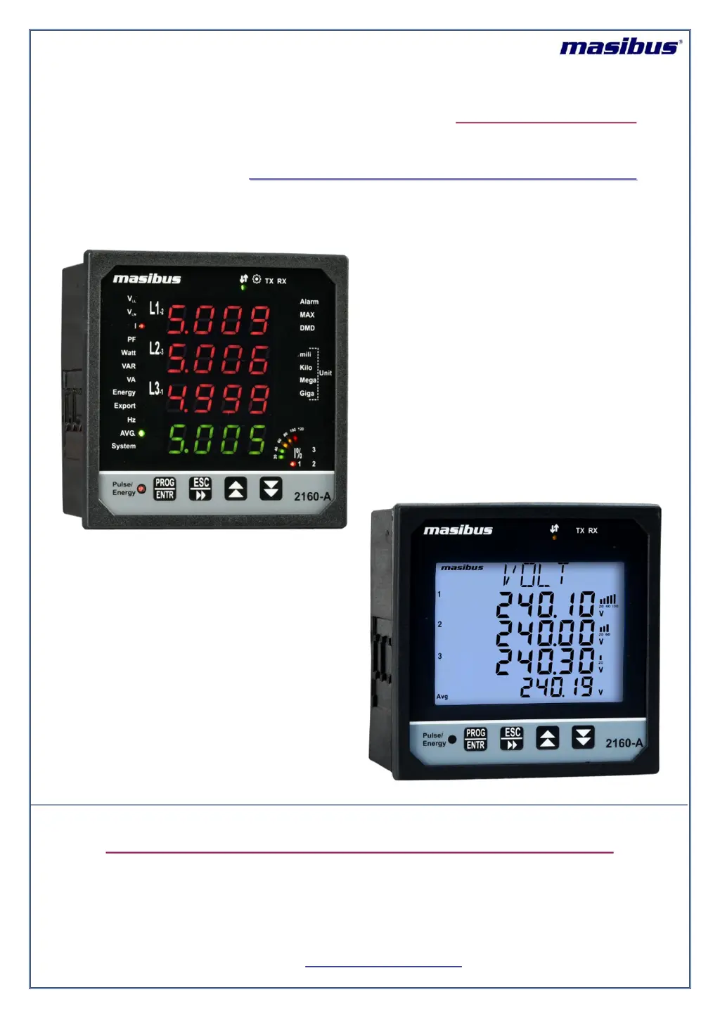 If the data displayed on your Masibus Measuring Instruments is inaccurate, there might be several reasons: * Incorrect setup values: Ensure that the correct values have been entered for the setup parameters, such as CT and PT ratings, and the system type. * Incorrect voltage inputs: Check the voltage input terminals to verify adequate voltage is present. * Improper wiring: Verify that all CTs and PTs are connected correctly, observing proper polarity, and that they are energized. Also, check the shorting terminals.